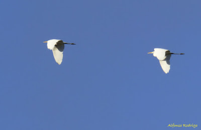 Garceta grande (1.5): 3 ejs. junto al puente Quintos, Granja de Moreruela, el día 06 (Cristian Osorio y José Barrueso); 4 ejs. aquí y otros 4 ejs. un poco aguas abajo, en el azud de Santa Eulalia de Tábara, el día 09 (Manuel Rodríguez, Ángel G. Mendoza, J.M. Colorado y Alfonso Rodrigo); 1 ej. en el embalse de Ricobayo, a la altura de San Cebrián de Castro, el día 09 (J.Alfredo Hernández y Maribel Martín).