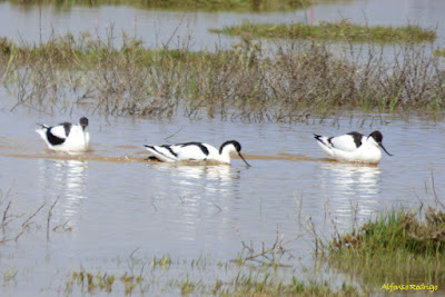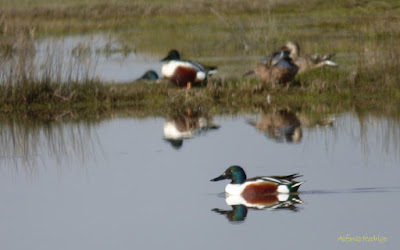 Ánsar careto (1.4): 2 ejs. (1 jov. y 1 2ºcy.) en la laguna de las Salinas, Villarrín de Campos, R.N. Lagunas de Villafáfila, el día 02 (José Barrueso), 1 ej., el día 08 (José Gomez), 2 ejs. sin especificar edades, el día 09 (Gonzalo Núñez-Lagos), 2 ejs. adultos, el día 13 (Alfonso Rodrigo).